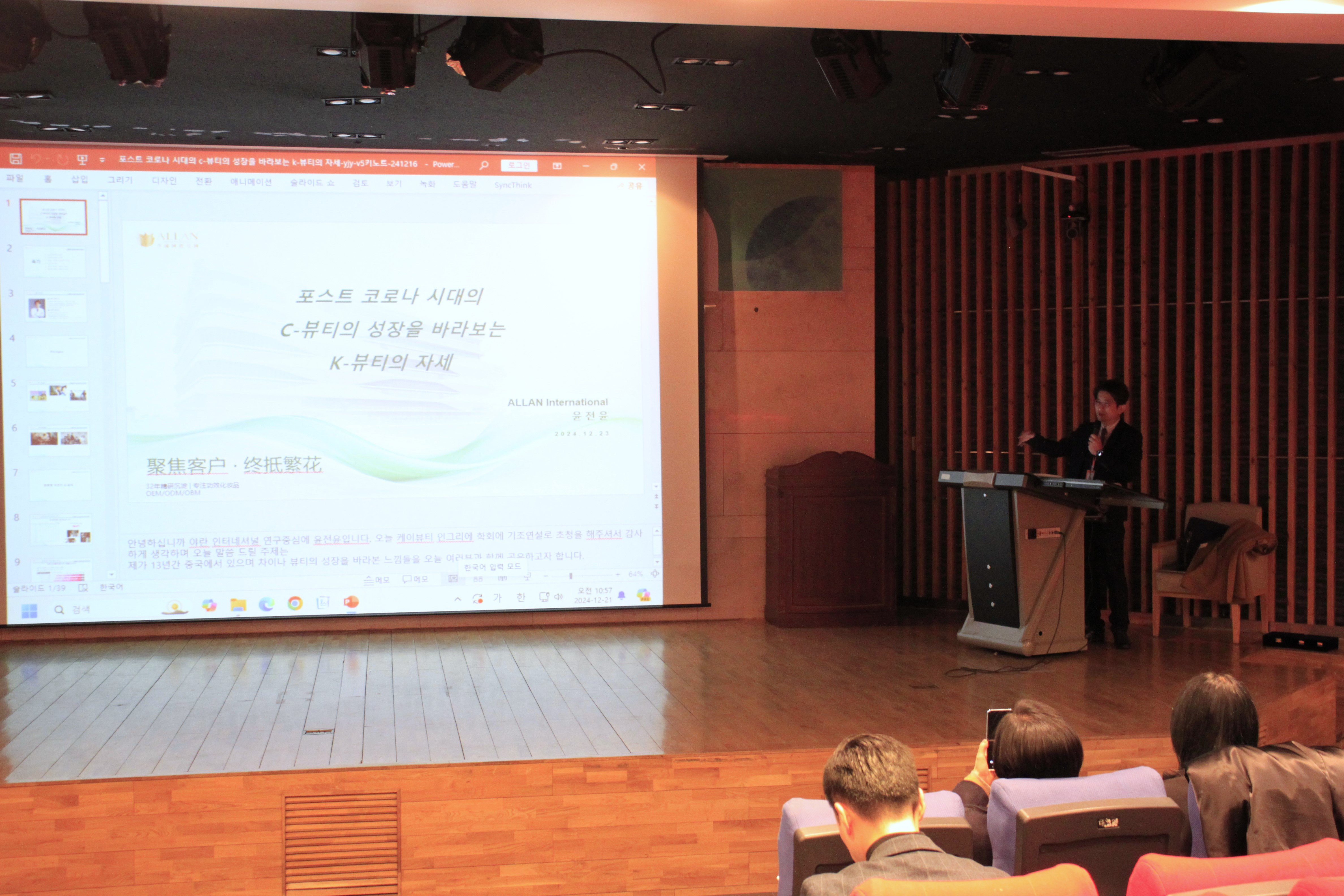 학술발표대회에 앞서 윤전윤(아람인터내셔널) 연구원의 ‘포스트 코로나 시대의 C뷰티의 성장을 바라보는 K뷰티의 자세’란 주제로 특강을 시작으로 논문발표와 포스터 및 작품발표가 진행되었다.