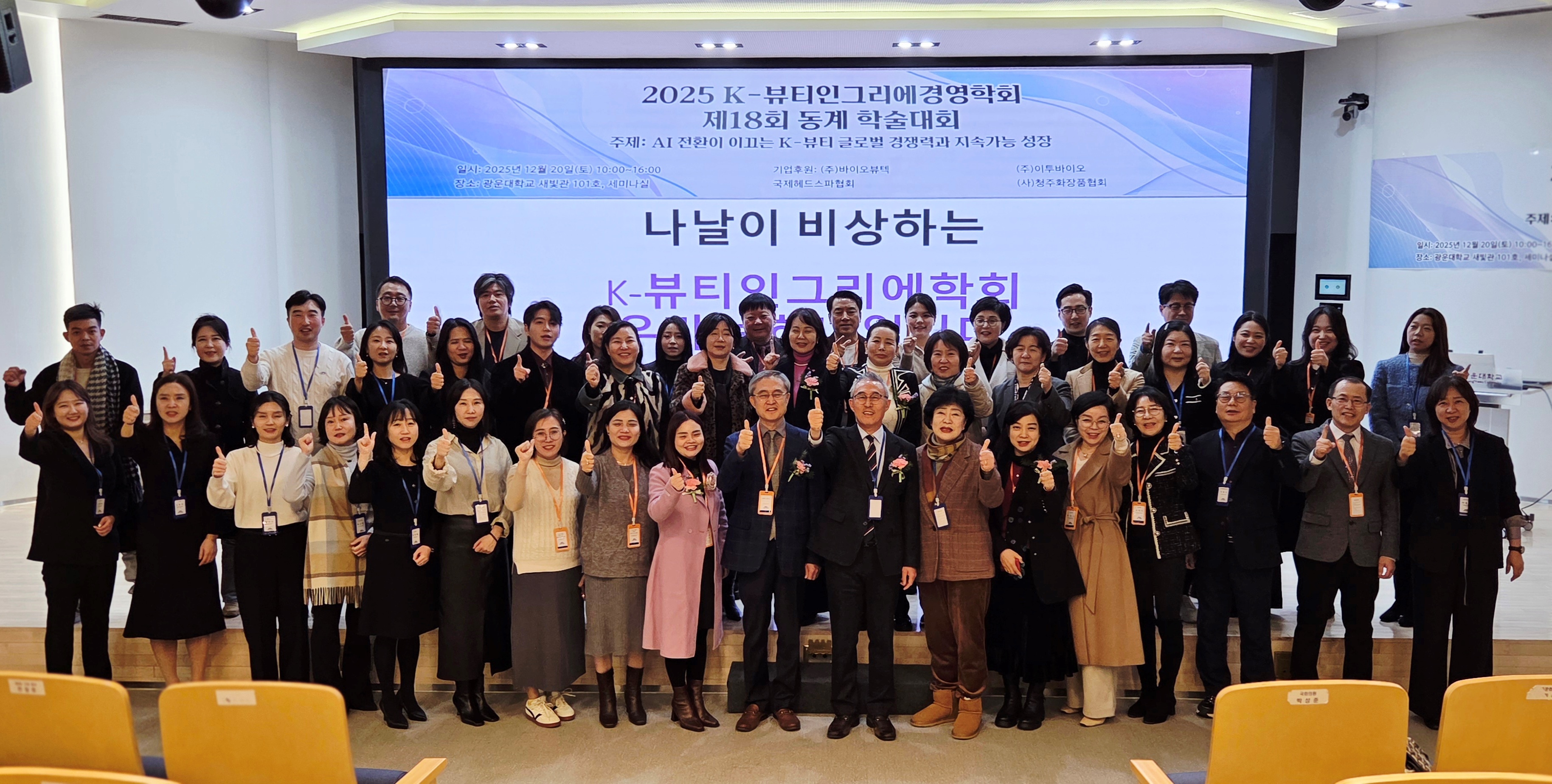 K-뷰티인그리에경영학회(회장 구태규)는 지난 12월 20일(토) 오전 광운대학교 새빛관 세미나실에서 김영철 대원대학교 총장, 정임전 한국인체미용예술학회 회장, 최영희 K-뷰티인그리에경영학회 고문 등 내외빈이 참석한 가운데 “2025년 K-뷰티인그리에경영학회 제18회 동계학술대회”를 개최했습니다.